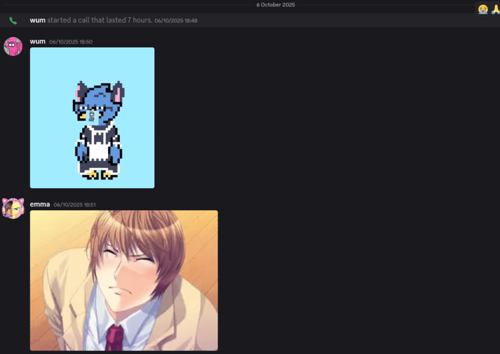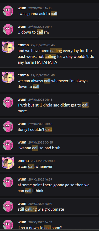 Its been about 5 months since we’ve first met :). We played that stupid roblox and phasmo game together on the 6th of October. It’s been 153 days since then. After that, there was a 2-week period where we didn’t talk until the 20th of October. Since then (117 days), we have been texting every day and calling for most of them as well!